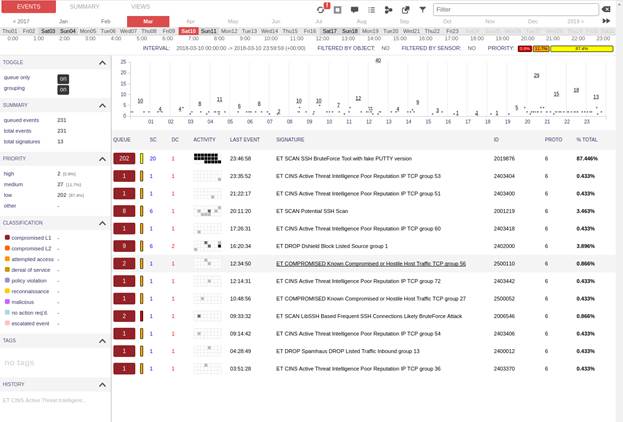 Figure11: Squert shows different attacks on Sat 10th of March